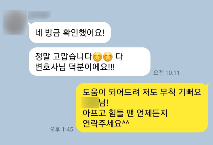 형사처벌을 피하고자 가해자는 의뢰인에게 적정한 합의금액을 지불하였고 의뢰인께선 미소를 되찾으셨습니다.